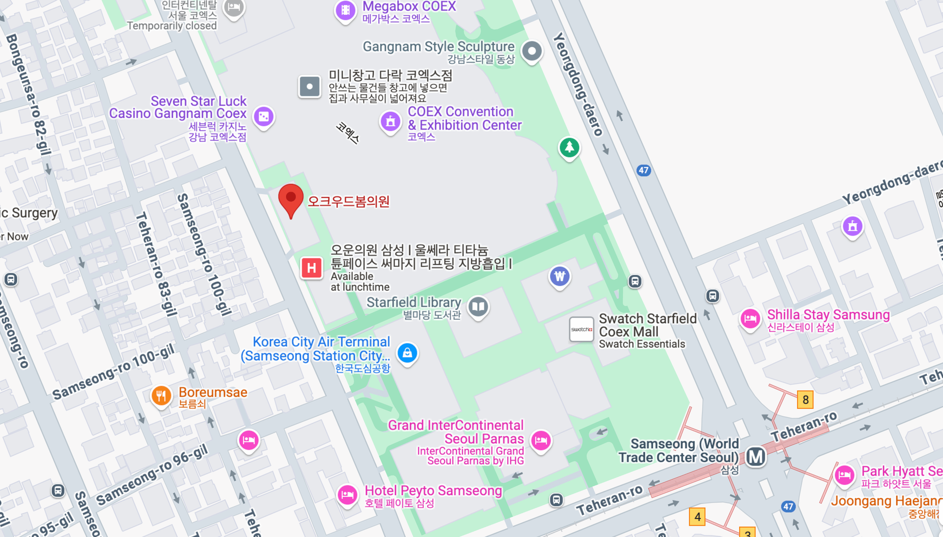 B1, Oakwood Hotel, 46 Tehran-ro 87-gil, Gangnam-gu, Seoul, Republik Korea. Bahnhof Cheongdam, Ausgang 8